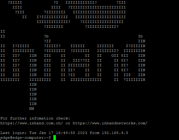 当界面出现终端提示符edge@edge-computer:~$,可输入shell命令时,连接成功。