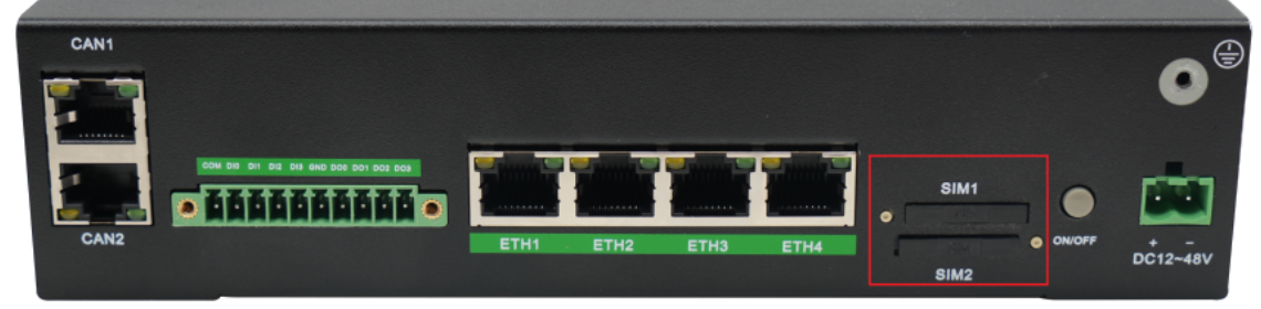 EC954支持2个SIM卡插槽,SIM卡需要在断电状态下安装,将SIM卡按压插入卡槽即可。