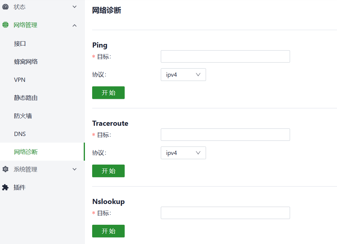 IEOS采用状态和配置分离的设计方案,分为网络管理,系统管理和状态三大功能板块。网络管理菜单和系统管理菜单下只能进行网络和系统的相关配置,状态信息需要统一到状态页面查看。