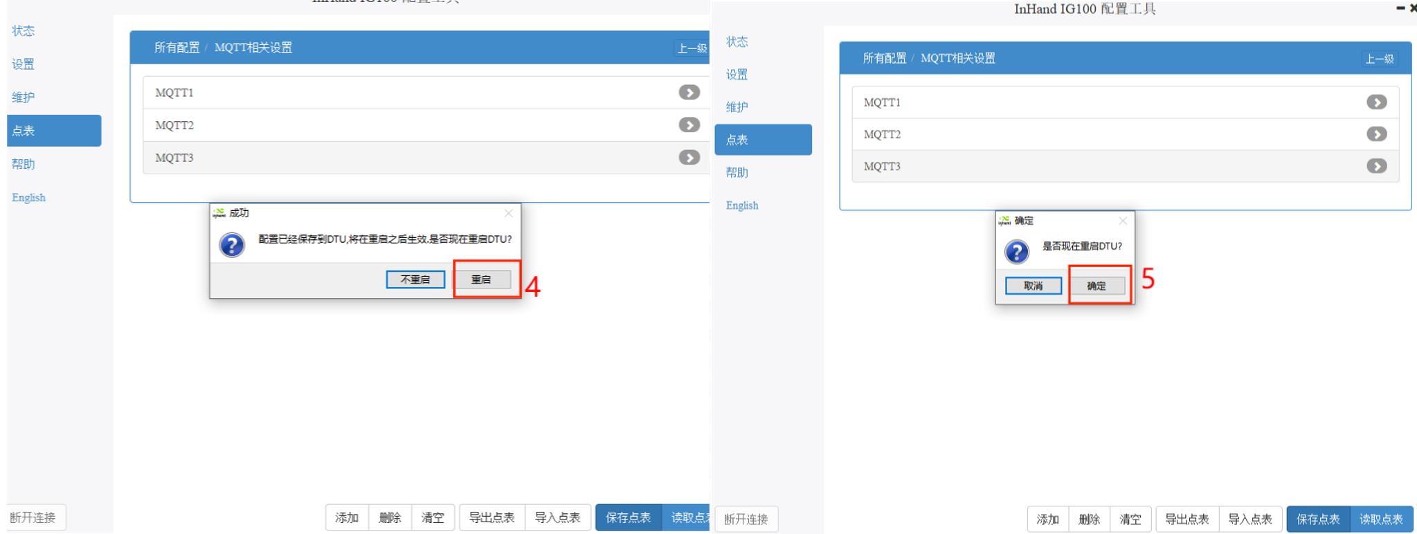 配置完成后返回上一级,点击保存点表,连续点击“确认”后,重新连接设备。