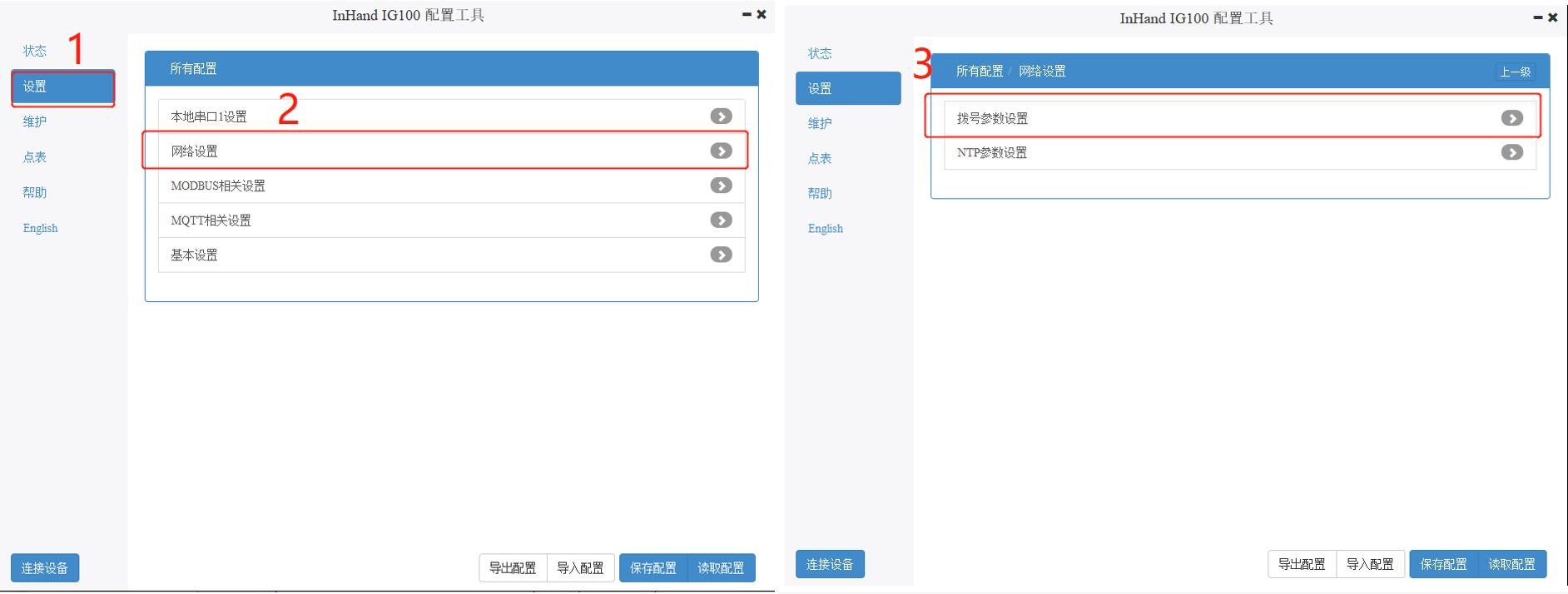 首先连接IG与PC,打开IG 配置工具